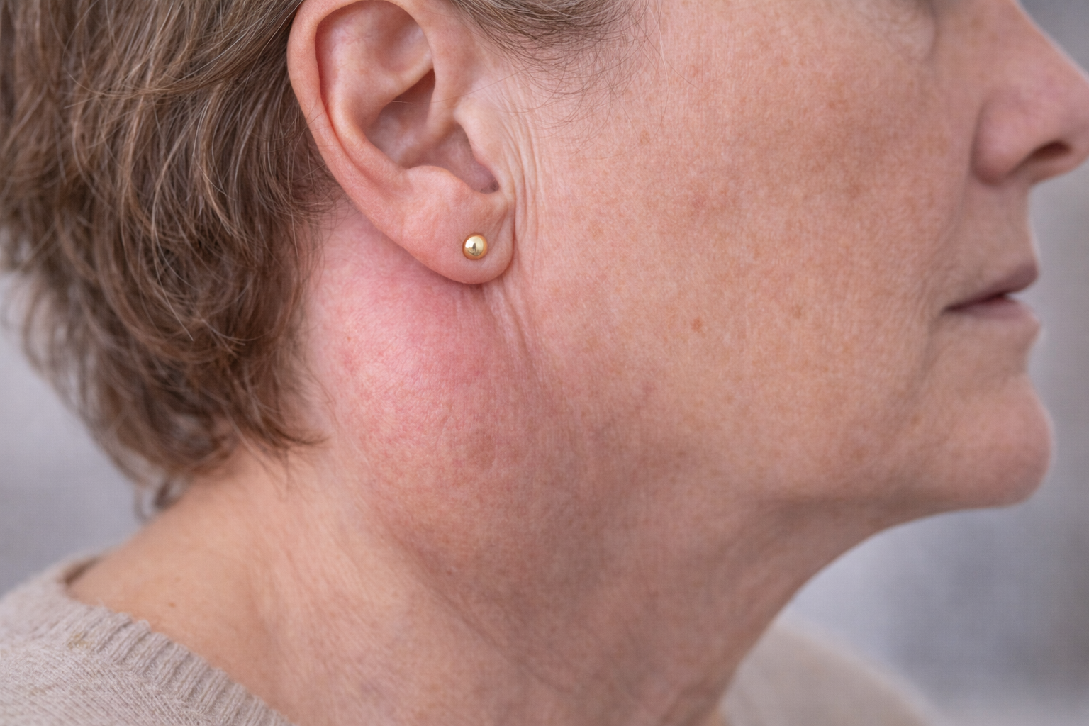- Zvětšení slinných žláz – zejména příuší příušních žlázních, někdy bolestivé.